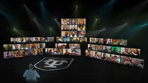 A virtual collaboration with Tulane University in New Orleans began when the marching band was invited to perform the Alma Mater for the university’s virtual commencement ceremony. With only a month before the event, there was little time to onboard, sync, and edit such a complex performance.